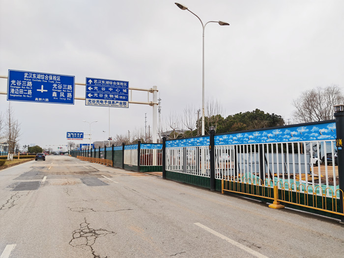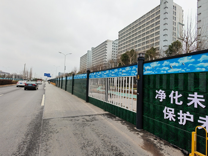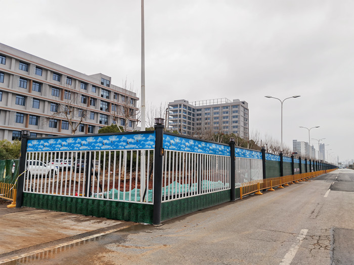 现在这种新款围挡在外观上进行了提高一步,绿色面板,配上蓝色蓝天白云眉头,加上灰色的烤漆圆柱,让人看上去就很美观,不仅保护路面行人的安全,也给城市增添了一抹美丽的色彩。