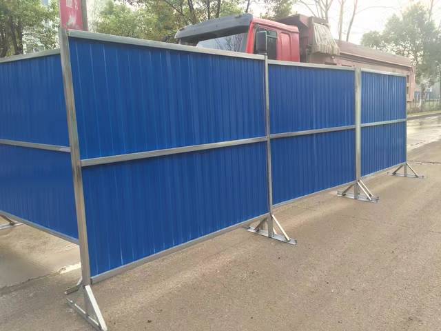 3、建筑工地临时围挡使用较多的材料就是彩钢板。彩钢板可用来制作平整的泡沫夹芯板围挡,两面彩钢板中间夹一层5cm厚的EPS泡沫作为围挡板村料。其宽度一般为950mm;长度随围挡的高度而定,假如围挡高度是2米,那彩钢板高度接近2米。